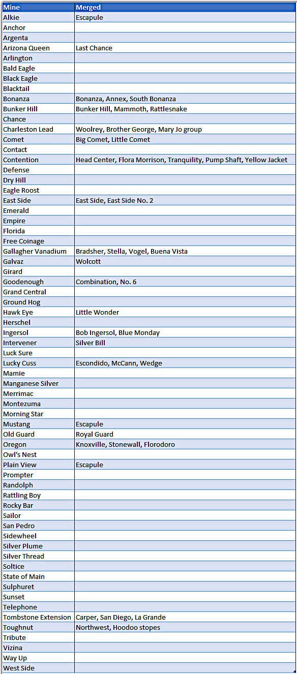 In 1973, the Arizona Bureau of Geology and Mineral Technology published an "Index of Mining Properties in Cochise County." That report divides Cochise County into 18 different mining districts, as follows.